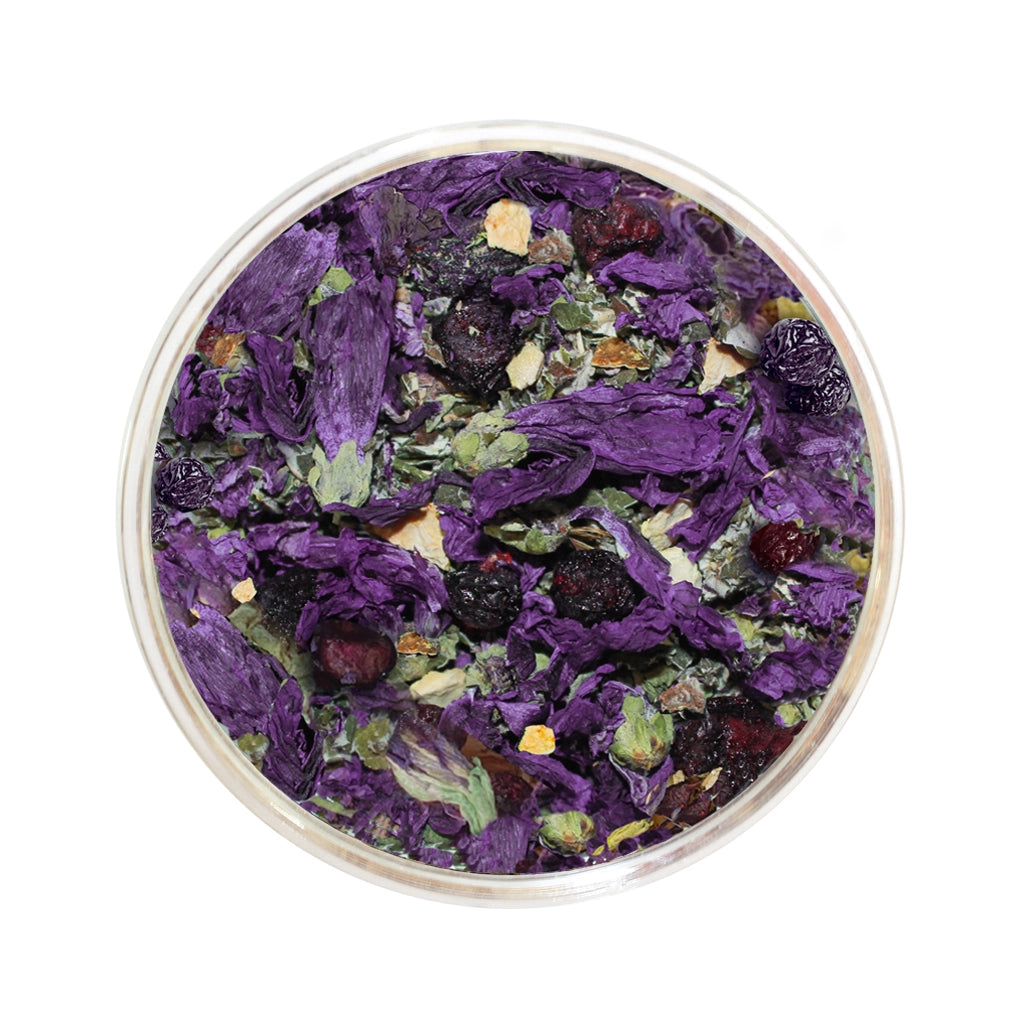 Découvrez notre tisane de mauve des bois : une infusion revigorante débordante du goût authentique de bleuet sauvage du Québec. À base de fleurs de mauve des bois entières et d’ingrédients naturels, des plantes traditionnellement reconnues pour leurs bienfaits anti-inflammatoires et antioxydants, et pour régulariser le transit intestinal.